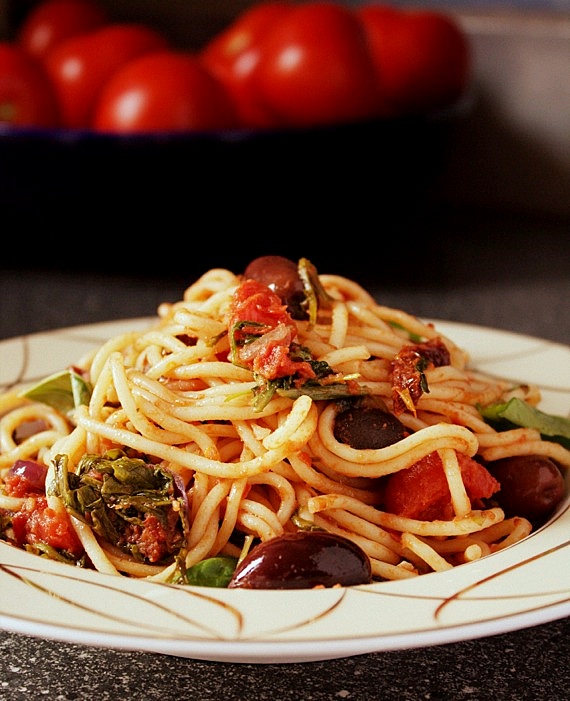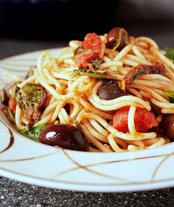 No cóż czy ta pasta działa jak afrodyzjak powinniście ocenić sami. Sama pasta smakuje obłędnie. Jest w niej wszystko co lubię…oliwki kalamata, anchois, pomidory…przyprawy i zioła wedle upodobania i ochoty.