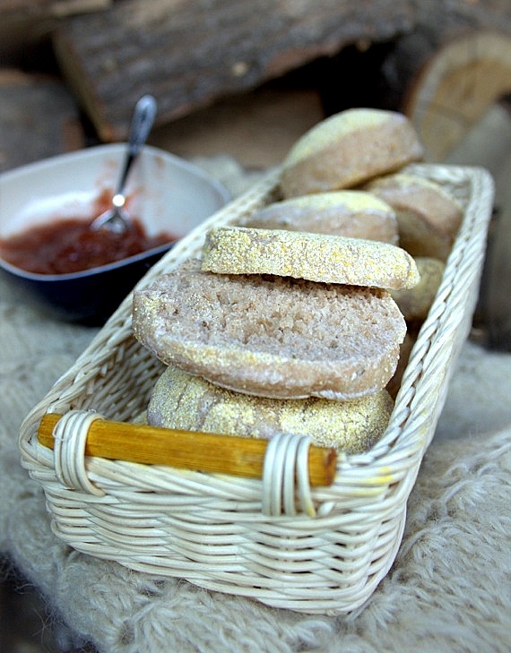 Do ich zrobienia zachęcił mnie prosty przepis i polenta. Niecodziennie też piekę chleb na patelni, więc musiałam wypróbować ten nowy dla mnie sposób. Jak każde pieczywo angielskie muffins smakują najlepiej jeszcze ciepłe. Oto przepis na małą porcję w sam raz na śniadanie.