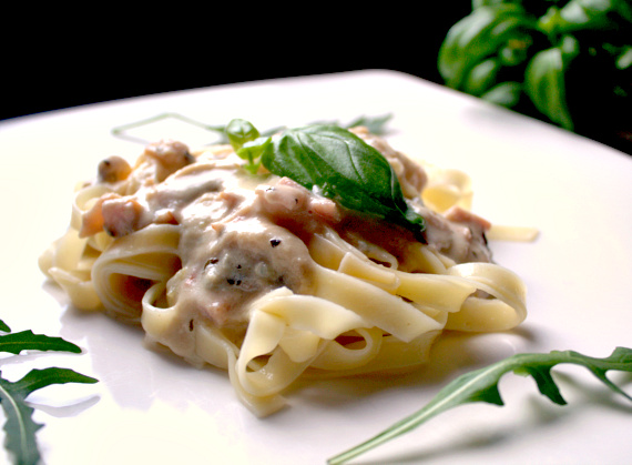 - Ugotuj makaron al dente. Jeśli użyliście krótkiego makaronu można go od razu wymieszać z sosem. Długi makaron jak tagliatelle polewam sosem.