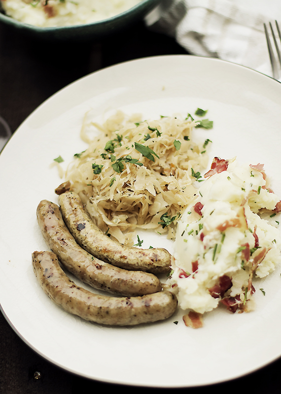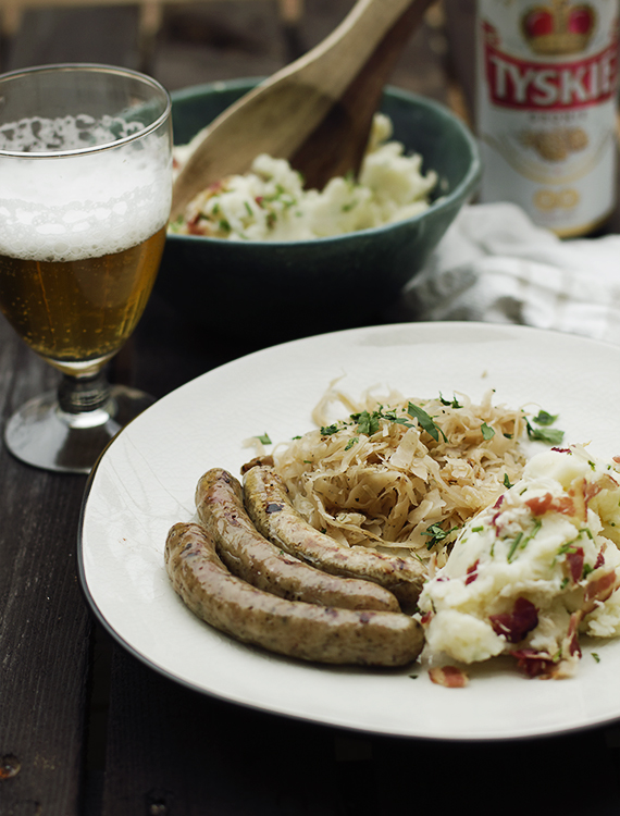 Biała kiełbasa, smażona kiszona kapusta i ziemniaczane puree…Iście polski obiad, który zawładnie sercem każdego kto takie danie spróbuje. Koleżanka z pracy bardzo lubi polską kuchnię, więc ją zaprosiłam na polski tradycyjny obiad.
