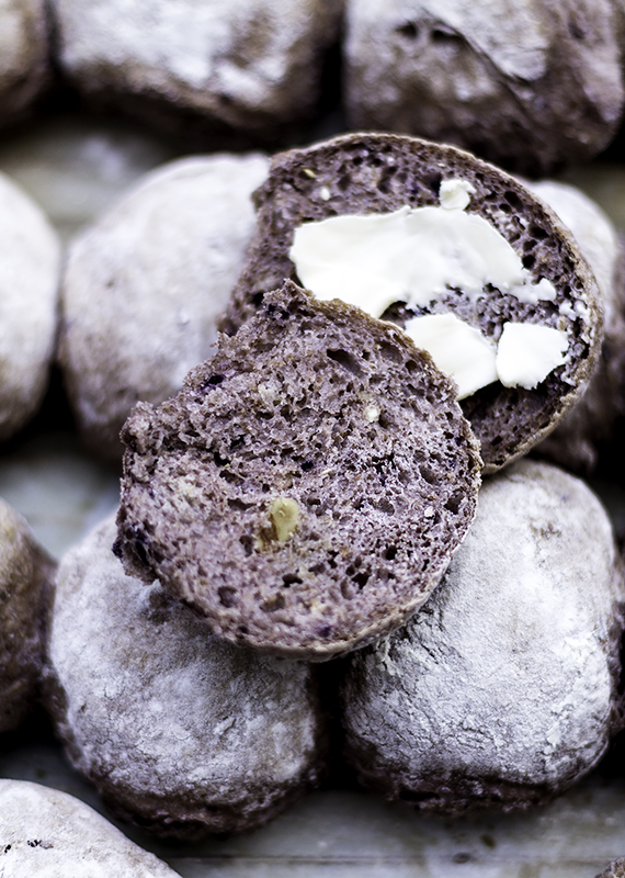 …Nie, nie to nie jagodzianki, to śniadaniowe bułki z jagodami i włoskimi orzechami. Miałam resztkę jagód, tych czarnych i trochę borówki brusznicy…Pomyślałam więc, bułki z jagodami, jeszcze takich nie piekłam, jagody pasują z włoskimi orzechami. Co mam do stracenia! Świeże bułki na śniadanie, z czym by je nie upiec będą zawsze pyszne. Gorące z masełkiem są cudowne! Bułki z jagodami wyszły super wypieczone, fiołkowe w środku, z kawałkami orzechów. Mniam!