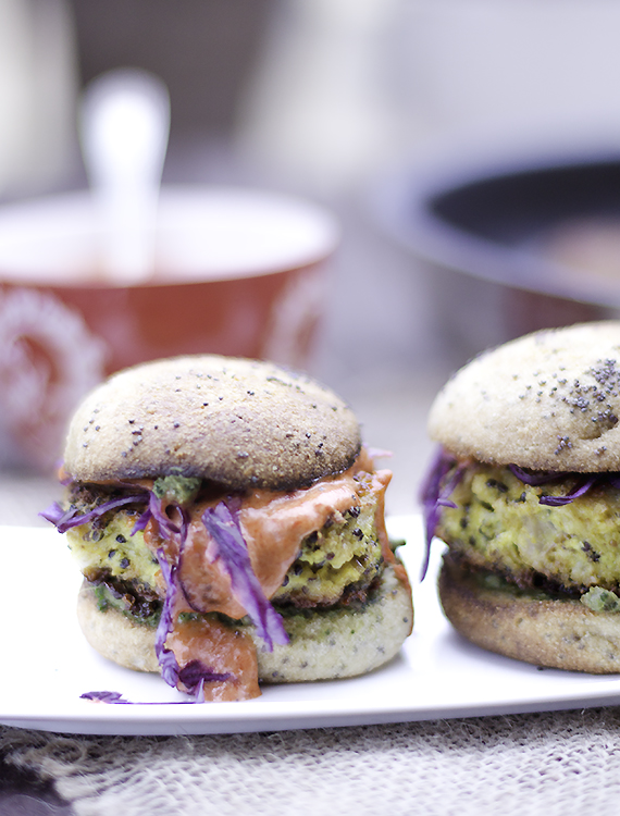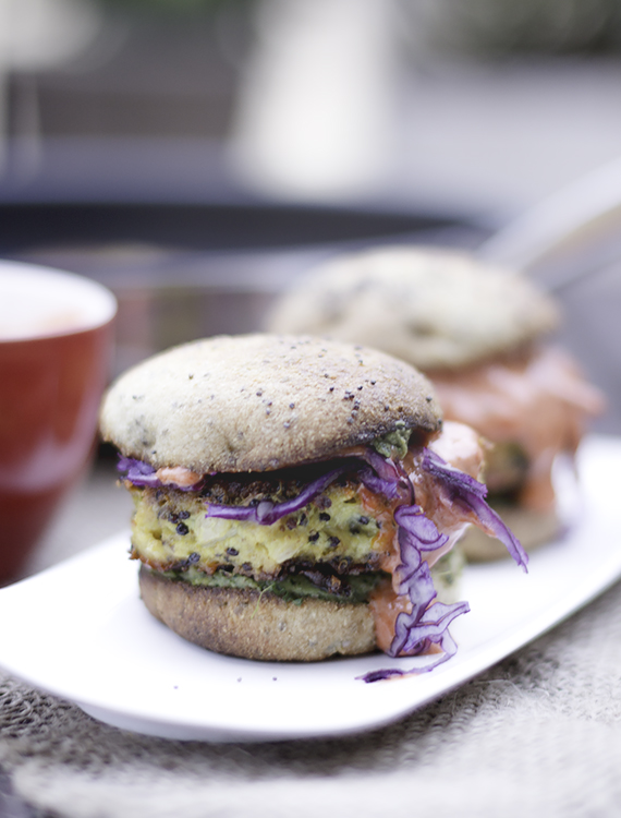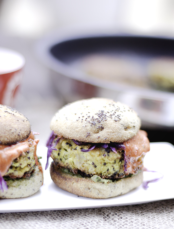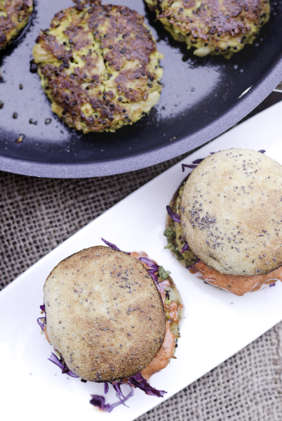 Burgery z kalafiora smażę na patelni. Dużą porcję piekę w piekarniku. Zaoszczędzony czas mogę wykorzystać na przygotowanie dodatków do burgerów. Polecam upiec bułki do burgerów. Nie ma nic lepszego jak burgery z kalafiora w świeżo upieczonej bułce.