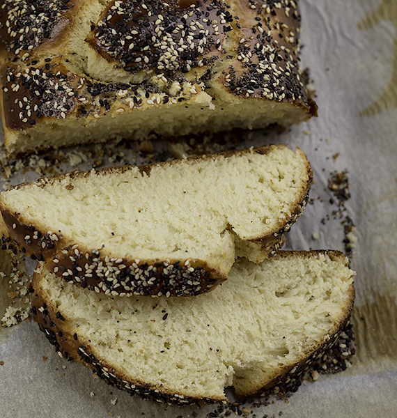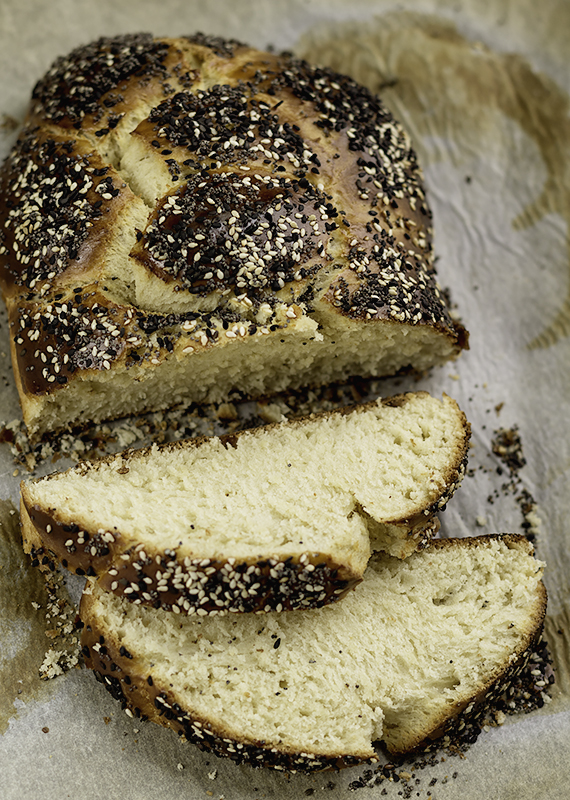 Chałkę upiekłam na miodzie i oliwie. Obficie posypałam nasionami.
