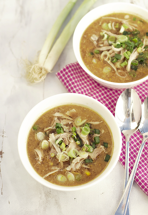 Podstawą tej zupy jest domowy bulion z kurczaka. Mrożona kukurydza, świeży imbir i czosnek…niewiele składników ale jaka eksplozja smaku. Zupę zagęściłam jajkiem. Idealny sposób dla osób na diecie bezglutenowej.