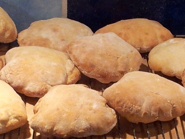Starałam się upiec chlebek pita już wcześniej. Pewnie, że chlebek był dobry, ale nie wyglądał jak chleb pita. Tym razem rozwałkowałam ciasto na okragłe placki dosyć cienko, no i piekłam chleb w inny sposób, a mianowicie bezpośrednio na ruszcie.