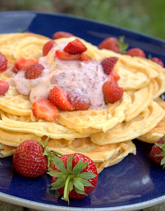 Dzisiaj Dzień Ojca w Polsce. Piszę w Polsce bo w Szwecji ojcowie świętują w listopadzie, więc mojemu tacie składam życzenia dwa razy. A do życzeń w tym roku dołączam szybki deser chrupiące gofry z poziomkowymi lodami.