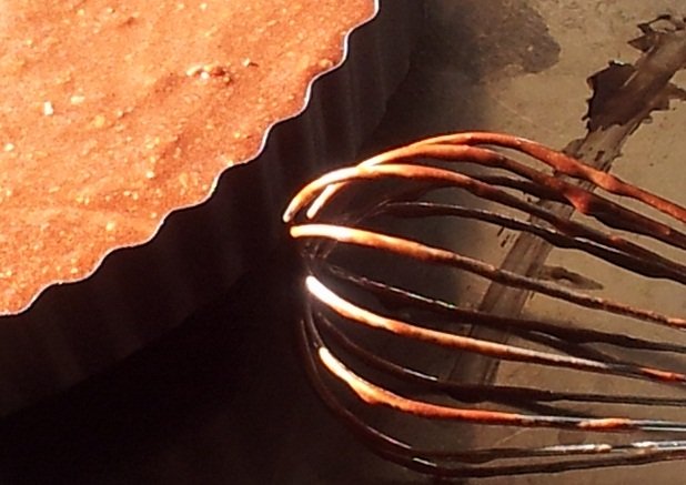 Ciasto czekoladowe nie przyszło na świat bez bólu, bo się oparzyłam przy wyjmowaniu ciasta z piekarnika. Jak pech to pech ubrana byłam w krótkie rękawy, więc foremka ztoczyła mi się bezpośrednio na skórę, powodując oparzenie w postaci trzech różnych pasków na przedramieniu. Ciasto poleciało na drugi koniec kuchni, dosłownie. Brownie się uratowało, bo jakoś szczęśliwie upadło dnem na podłogę.