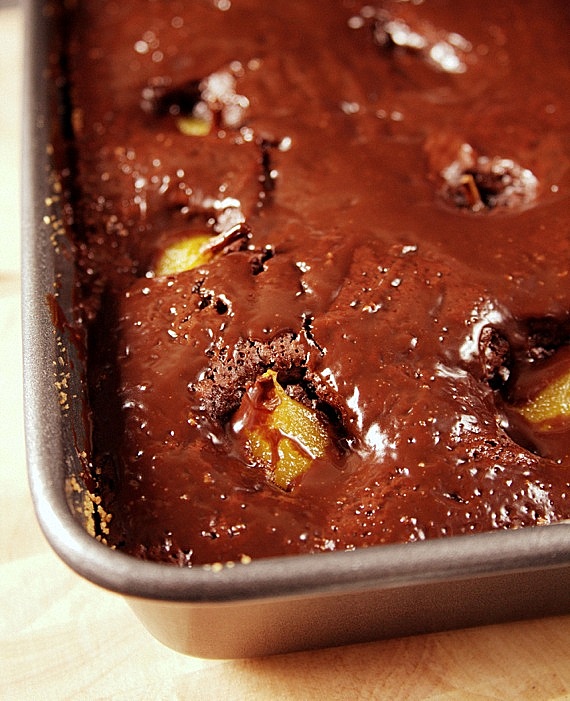 Przepis na ciasto czekoladowe z szafranowymi gruszkami