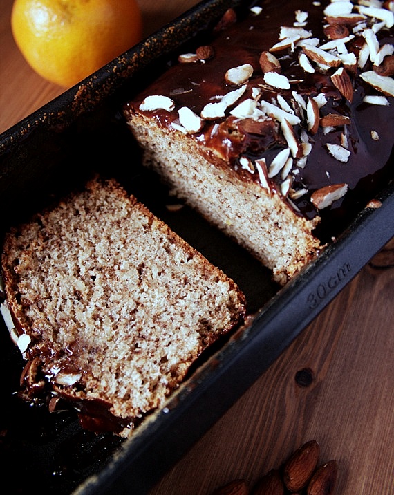 - Zrób ganache i pokryj nim ciasto , a natępnie polyp migdałami.
