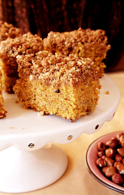 Tym razem upiekłam ciasto z dyniowym puree. Dynię piekłam w piekarniku. Pieczona dynia ma bardziej intensywny smak i kolor przez co ciasto jest bardziej aromatyczne i pomarańczowe. Prawda, że prezentuje się cudownie! A jak smakuje! Koniecznie wypróbujcie ten przepis!