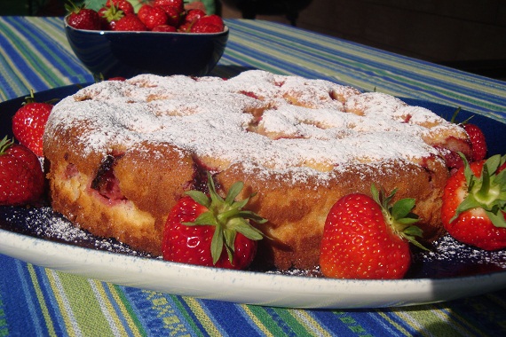 Większość truskawek zjedliśmy prosto z krzaczków ale te które ocalały wykorzystałam właśnie do wypieku tego ciasta.