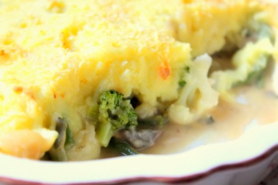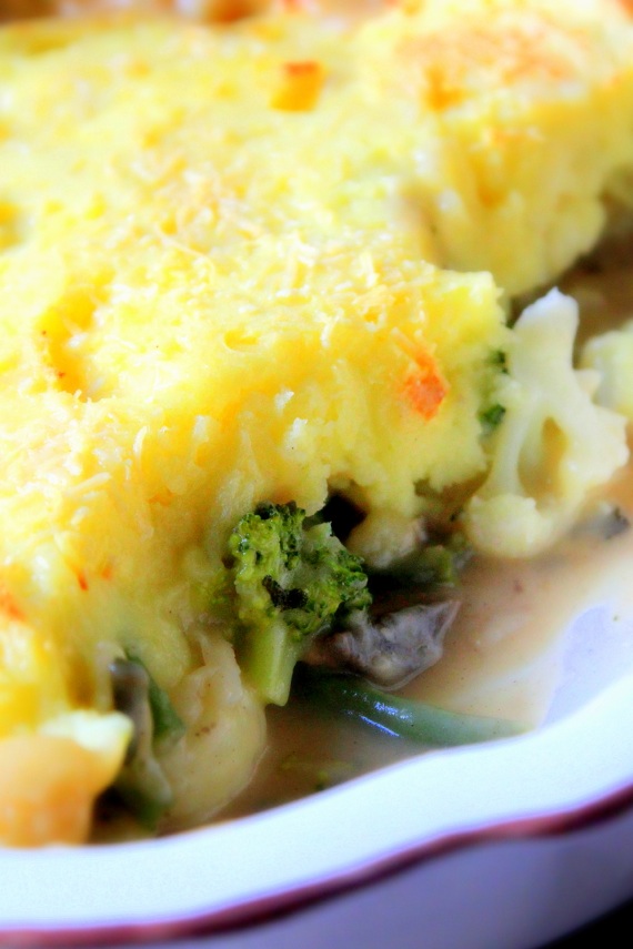 Kiedys wpadla mi rece ksiazka z jarskimi przepisami. W niej wlasnie znalazlam przepis na warzywa w beszamelu po ziemniaczana pierzynka. Do tej potrawy wykorzystalam nie tylko ziemniaczane puree, ale rowniez inne warzywa, ktore mi pozostaly z obiadu z poprzedniego dnia.