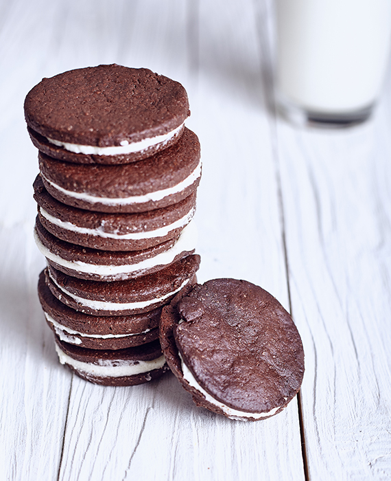 Przy piątku zapraszam na czekoladowe ciastka sandwich. U mnie ostatnio sandwich są bardzo popularne. Dzisiejsze czekoladowe ciastka nie są tak wypasione jak sandwich, które przyrządziła tydzień temu ale nie mniej smakowite. Czekoladowe ciastka lubią chyba wszyscy. Te są kruche, połączone lekkim kremem.