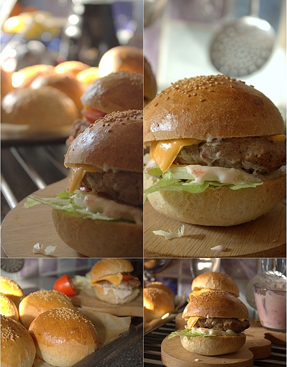 Pieczecie bułki do hamburgerów, czy kupujecie? Upiekłam tym razem hamburgerowe bułeczki w wersji GI, bardzo pulchne, idealne do hamburgerów. Zrobiłam tez świetny dressing z jogurtu i chili, aby jeszcze bardziej podostrzyć. Takim domowym hamburgerem można naprawdę się najeść no i wiemy co jemy ( no chyba, ze jakieś końskie mielone się trawiło…)