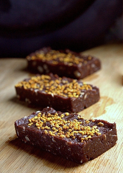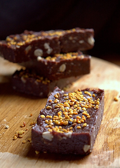 Zapraszam na energetyczne batoniki z pyłkiem pszczelim. Pyłek pszczeli (występuje również jako jeden ze składników w propolisie) to tak zwany super food. Jest tak zdrowy i bogaty w przeróżne biotyczne związki, że gdyby ktoś znalazł się na bezludnej wyspie i miał jedynie do jedzenia pszczeli pyłek i wodę to z pewnością nie umarłby z głodu.