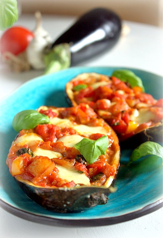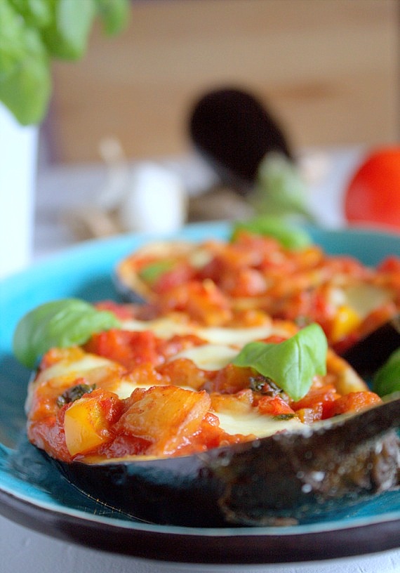 Faszerowany bakłażan był jednym z moich pierwszych przepisów. Dzisiejsza wersja tego wyśmienitego dania jest typowo jarska i niezmiernie szybka do wykonania. Warzywny farsz wzbogaciłam o mozzarella, która podczas zapiekania tylko lekko się topi. Mozzarella jest wtedy gorąca, ale wciąż lekko ciągnąca. Taką lubię najbardziej!