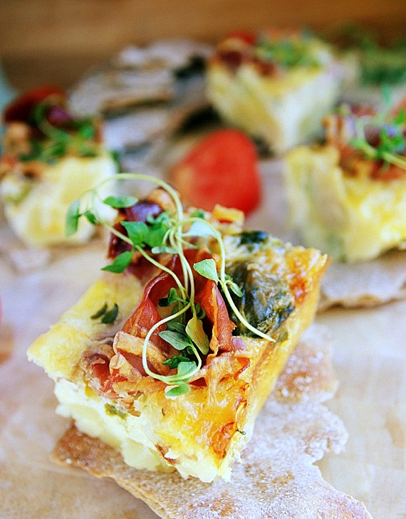Frittata podałam na chrupkim chlebie, który wczoraj prezentowałam. Takie małe przekąski na ciepło świetnie pasują do bufetu.
