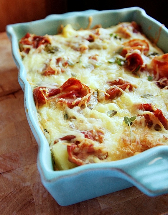 Resztki, resztki… Frittata to jedno z najczęściej robionych przeze mnie dań z obiadowych resztek. Wczoraj zostało mi trochę brukselki i gotowanych ziemniaków, więc dzisiaj skleciłam to danie, frittata z brukselką i parmeńską szynką. Szybki obiad, pyszna hiszpańska frittata, bardzo syta.