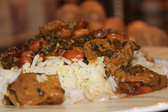 Jak wiekszosc perskich potraw, rowniez ten gulasz podaje sie z ryzem na sypko.