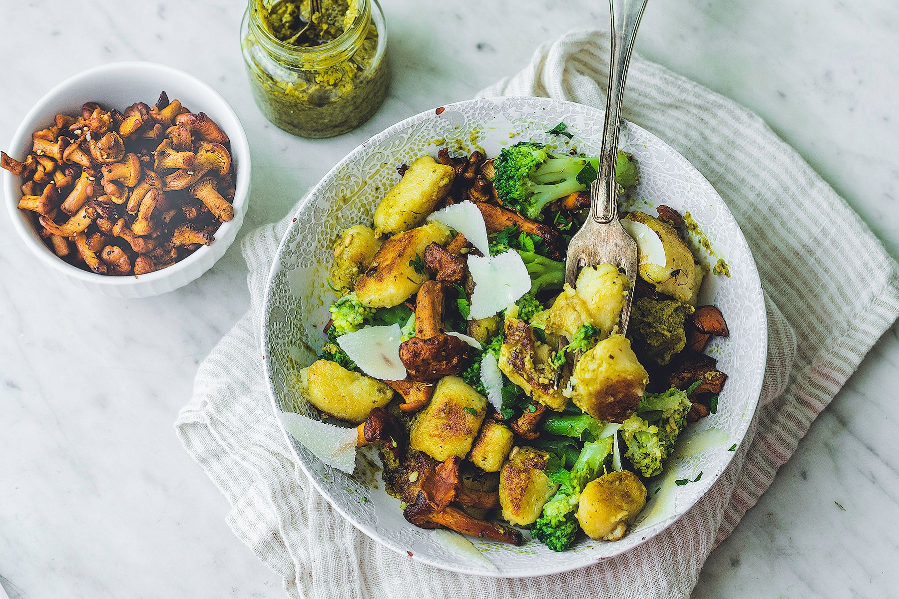 Prosty przepis na gnocchi z kurkami, brokułami i bazyliowym pesto