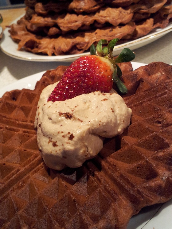 Moja młodzież będzie jadła gofry z kremem capuccino, a mój mały Philip z waniliową bitą śmietaną i truskawkami, które tak uwielbia.