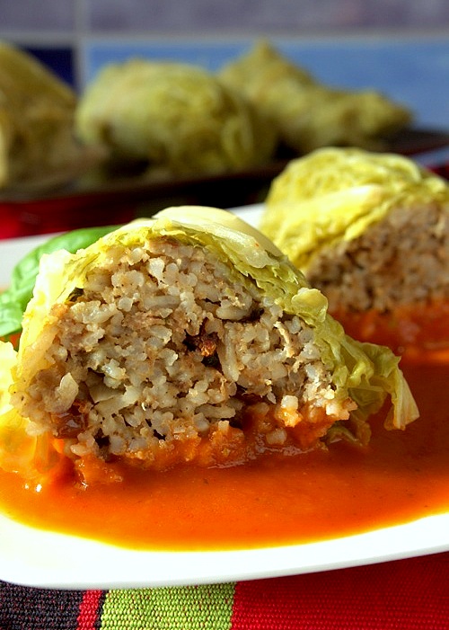 Dzisiaj proponuję gołąbki z włoskiej kapusty w tradycyjnym wydaniu z sosem pomidorowym. Ryż można swobodnie zastąpić jakąś kaszą, gołąbki z młodej kapusty i bulgur, a dla wszystkich co mają dosyć mięsa proponuję wersję wegetariańską, gołąbki z kaszą i soczewicą.