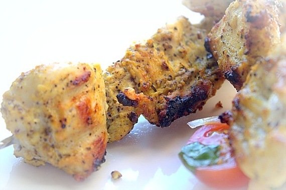 - Namocz 12 patyczków do grilla. Nabij kurczaka na patyczki i grilluj 5 minut na patelni grillowej lub grillu.