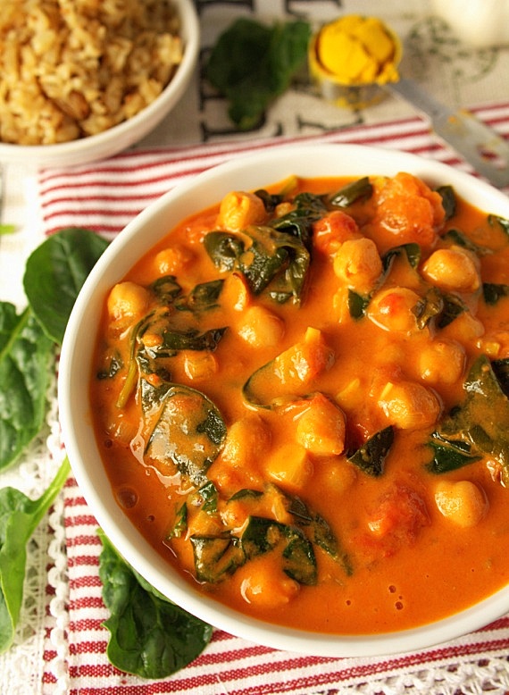Dopadło mnie przeziębienie. Od kilku dni jestem w domu i jakoś nie mogę do siebie dość…Kaszel i chrypka tylko, a tak wykańczają. Dzisiaj więc szybki obiad, gulasz z ciecierzycy i szpinaku, bo nie miałam siły na gotowanie. W ruch poszły puszki z ciecierzycą, kokosowym mlekiem i pomidorami.