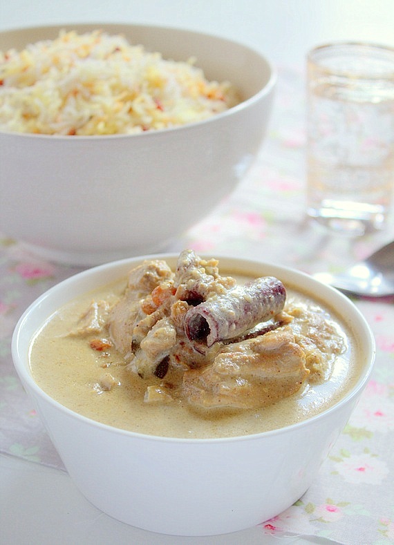 Uwielbiam Nigella Lawson, bo lubimy podobne gotować. To danie gulasz z kurczaka z migdałami gotuję już od kilku lat. Przepis pochodzi z jednego z programów Nigelli, który zapisywałam w szybkim tempie, żeby nie pominąć któryś ze składników. Wtedy jeszcze nie myślałam, że kiedyś założę kulinarny blog. Jakimś cudem ten przepis dopiero dzisiaj trafił na blog.