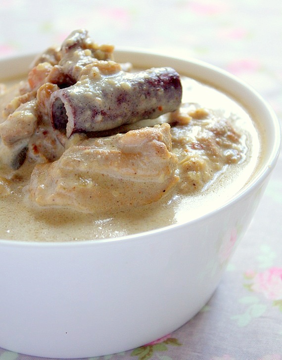 Gulasz z kurczaka z migdałami jest przepyszny, delikatnie słodki w smaku, który balansuje dodatek kwaśnej śmietany. Gulasz jest dosyć gęsty, bo migdały podobnie jak orzechy włoskie w perskim gulaszu naturalnie zagęszczają go, więc nie potrzeba używać mąki, co na pewno przypadnie do smaku osobom na diecie bezglutenowej.