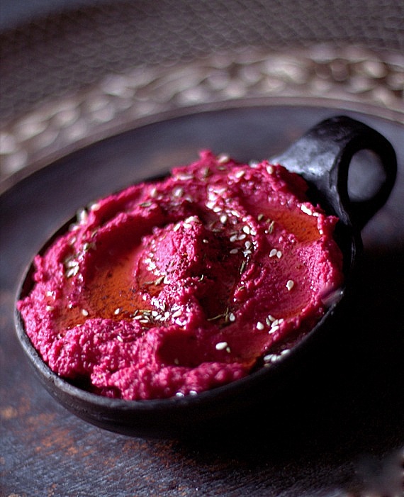 Humus nadaje się do wszystkiego, dosłownie do wszystkiego. Na to aby połączyć go z buraczkami nie wpadłem. Wiem jednak, że niedługo to przetestuje na sobie :)