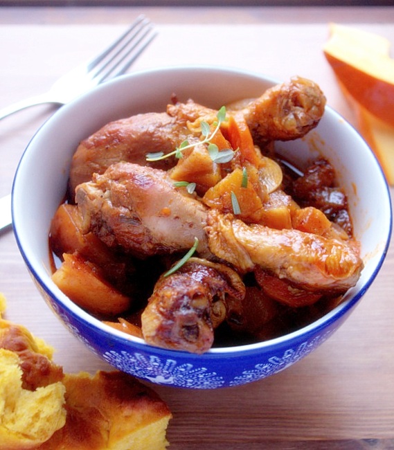 Gulasz z kurczaka jest bardzo aromatyczny. Obok naszych rodzimych warzyw,dynii i jabłkowego soku dodałam szczyptę szafranu… Oj , tak bez szafranu nie mogę żyć!