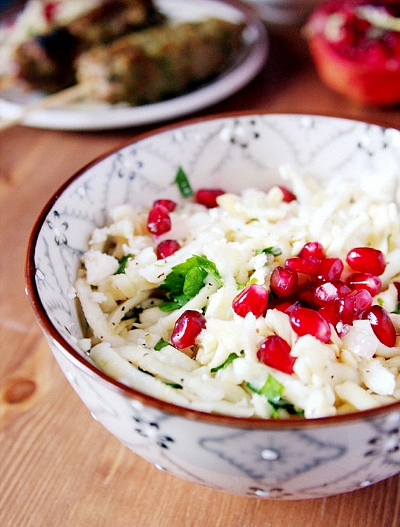 To danie to kolejny przykład jak łatwo można połączyć idee, pochodzące z różnych kuchni świata. Wykorzystałam tu przepis na kebab na patyku, który obtoczyłam w pangratatto, a surówka z selera…nie ma chyba bardziej polskiej surówki niż ta…