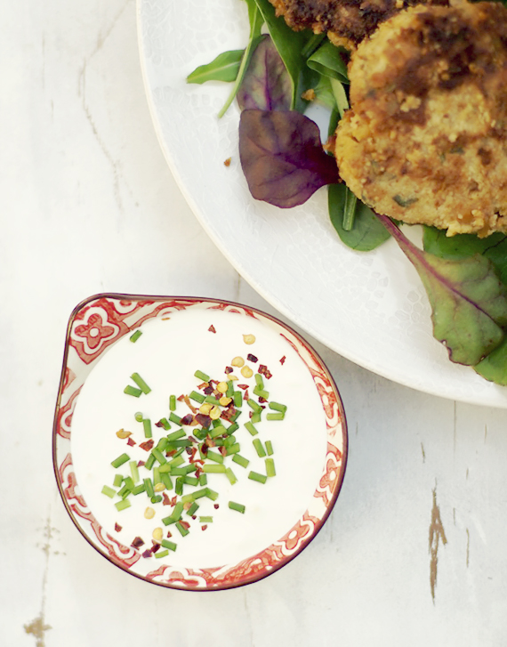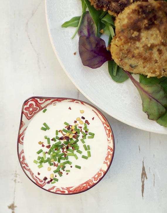 Wymieszaj składniki na dip i podaj do jarskich kotlecików.