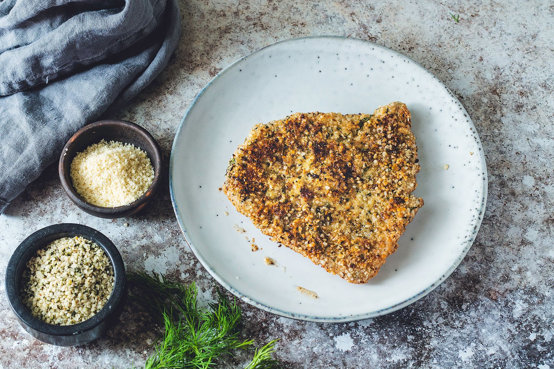 Szczerze mówiąc, całkiem lubię roślinne wersje tego klasyka. Ale najczęściej kombinuję z panierką – bo nawet tradycyjny schabowy może mieć zupełnie nowy charakter. Mąka migdałowa, koperek, sezam, siemię lniane, a może… nasiona konopi?