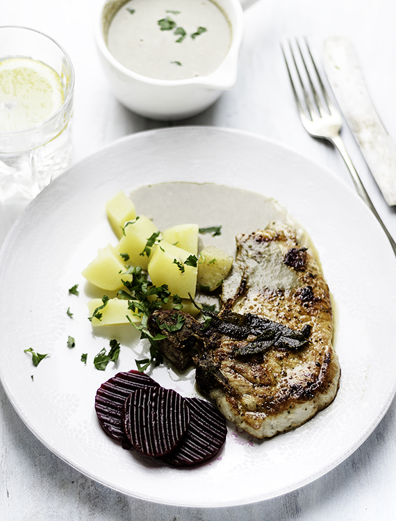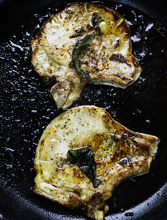 Lubię przyrządzać kotlety schabowe z kością, takie wrzucone na patelnię na dosłownie kilka minut. Spróbujcie dodać do smażenia kilka liści świeżej szałwii. Kotlety będą bardziej aromatyczne. Szałwię dodałam również do sosu. Jak wspomniałam schabowe i sos to mus!