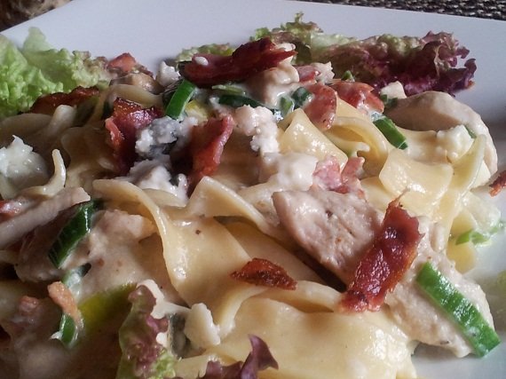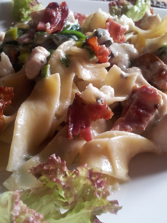Niedawno ugotowałam pyszny, kremowy sos do makaronu, jeden z moich ulubionych, z dodatkiem kurczaka, smażonego, chrupkiego boczku i sera Roquefort. Sos podprawiłam świeżo zmielonym czarnym pieprzem.