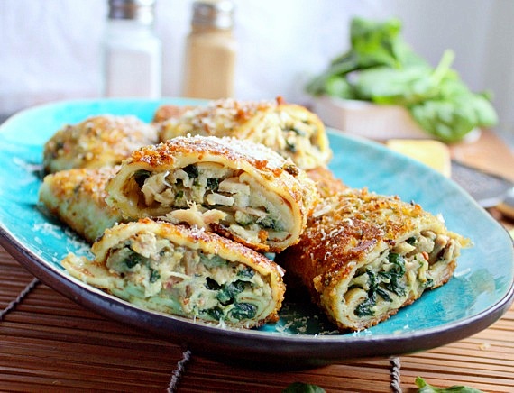 Nadziewane i panierowane naleśniki czyli krokiety przyrządzam często, bo rodzinka bardzo je lubi. Dzisiaj kolej na nowy przepis, krokiety z kurczakiem, mozzarella i szpinakiem.