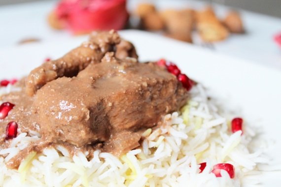 Oryginalna nazwa tego perskiego gulaszu brzmi fesenjoon (fesendżun) . Danie to jest bardzo popularne w północnej części Iranu, z której się wywodzi mój mąż. Tam właśnie też używa się głównie mięso dzikiej kaczki do przyrządzenia tego dania. Miałam przyjemność jeść ten gulasz z kaczką, ale z kurczakiem jest nie mniej dobry. Polecam bardzo!