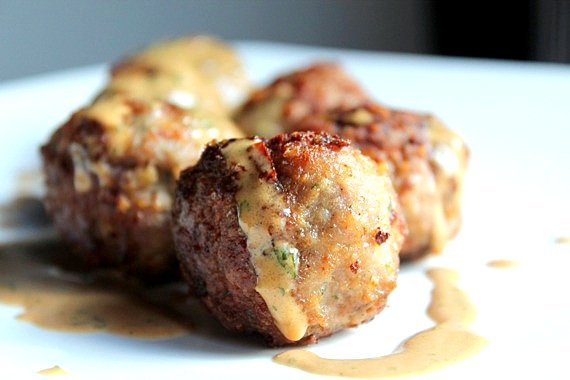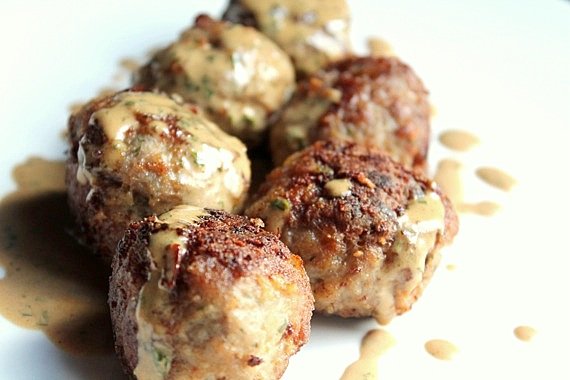 Szwedzkie köttbullar podaje się z brązowym sosie na bazie soji