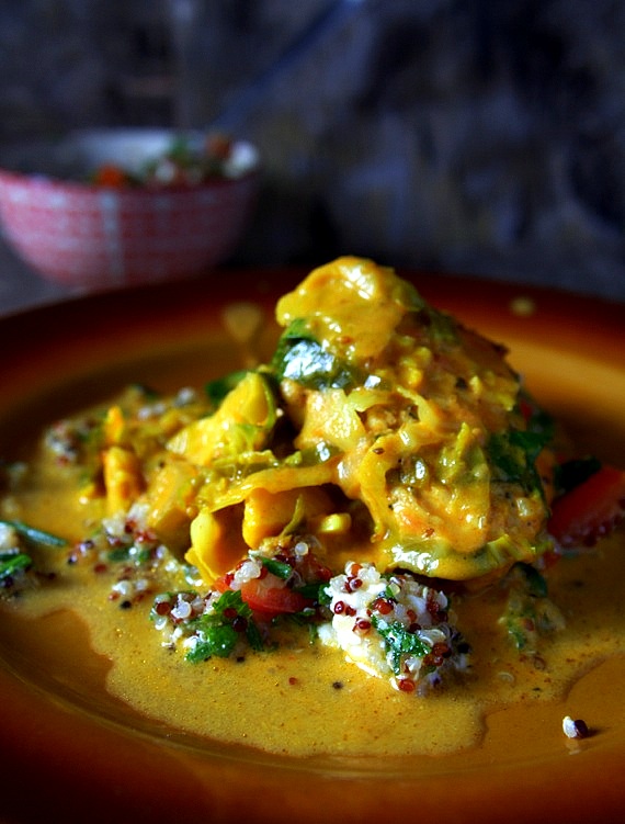 Kurczak z brukselką w kokosowym sosie