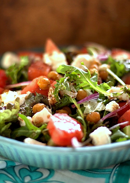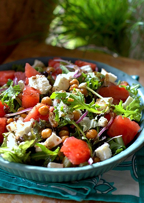 Nie mogę uwierzyć, że lato już się zbliża ku końcowi! Aby choć na talerzu przedłużyć te wspaniałe beztroskie chwile proponuję kolorową sałatkę na szybki obiad lub lekką kolację. u mnie dzisiaj lekka sałatka z arbuza, prażonej ciecierzycy i feta.