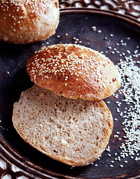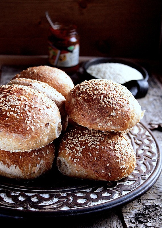 No więc kiedy już zrobiłam levain to miałam niesamowitą ochotę upiec levain chleb. Ponieważ ostatnio piekłam bochenki, więc dzisiaj upiekłam duże bułki z ciecierzycą i sezamem, ale z tego przepisu można również upiec tradycyjne bochenki.