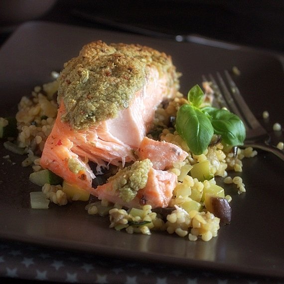 Łosoś to zdecydowanie nasza ulubiona ryba, którą przyrządzam na mnóstwo sposobów, dzisiaj łosoś pod chrupiącą pierzynką podany z lekką sałatką na ciepło z bulgur i warzyw. Bardzo prosty przepis na danie z łososiem w sam raz na szybki obiad jak to z łososiem bywa.