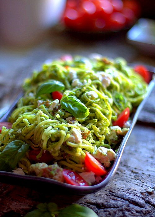 Do makaronu przygotowałam pesto ze szpinaku, bazylii i migdałów. Uważam, że domowe pesto smakuje najlepiej, a poza tym można zmiksować pesto według własnego uznania. Raczej się nie spotkałam ze szpinakowym pesto czy z pesto z jarmużu w sklepie, a Wy?