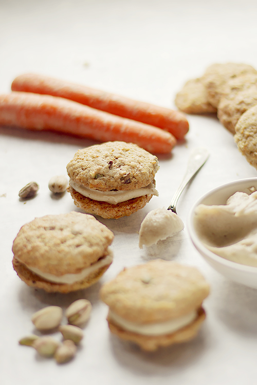 Miałam ochotę na marchewkowe ciasto ale pomyślałam, że spróbuję upiec marchewkowe ciasteczka przełożone kremem. Ciasteczka wyszły super, z dodatkiem mąki grahamki i masła.