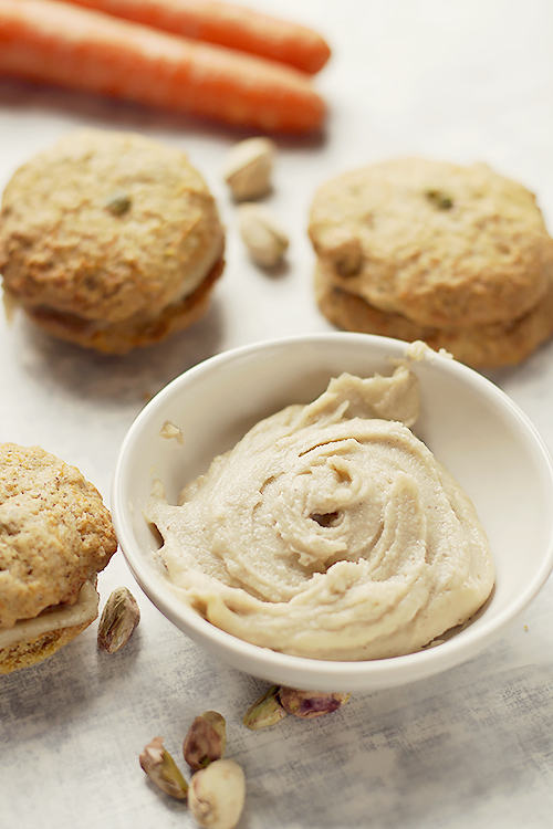 Przysłowiową kropką nad i w ciasteczkach jest krem, który zrobiłam z orzechów cashew. Od dawna czaiłam się na ten wegański krem, a piekąc marchewkowe ciasteczka od razu o nim pomyślałam. Spróbujcie zrobić sami taki orzechowy krem, bo jest naprawdę bardzo dobry.