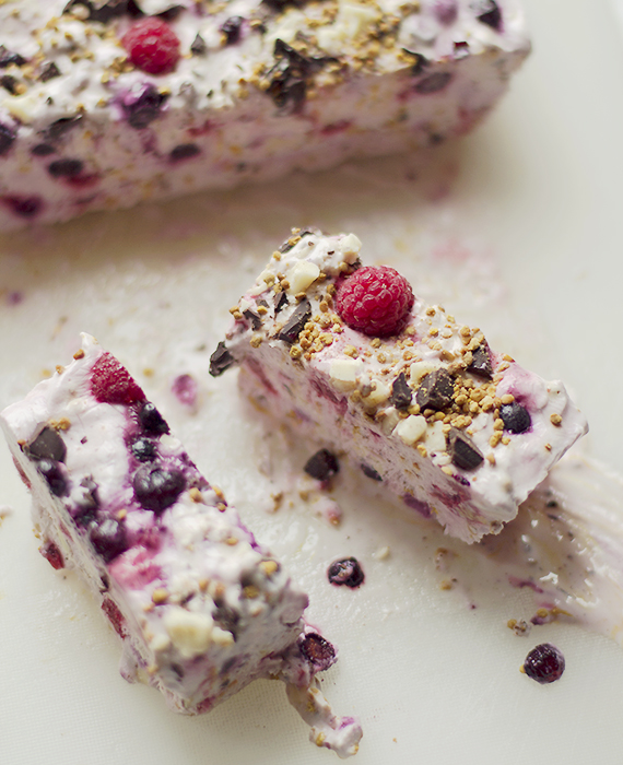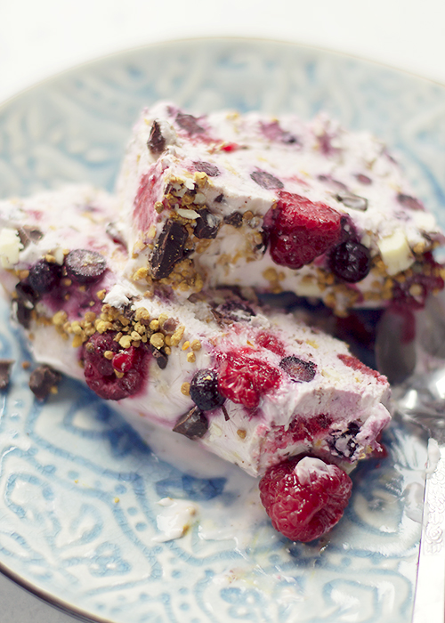 Przepis na mrożony jogurt z owocami, czekoladą i orzechami