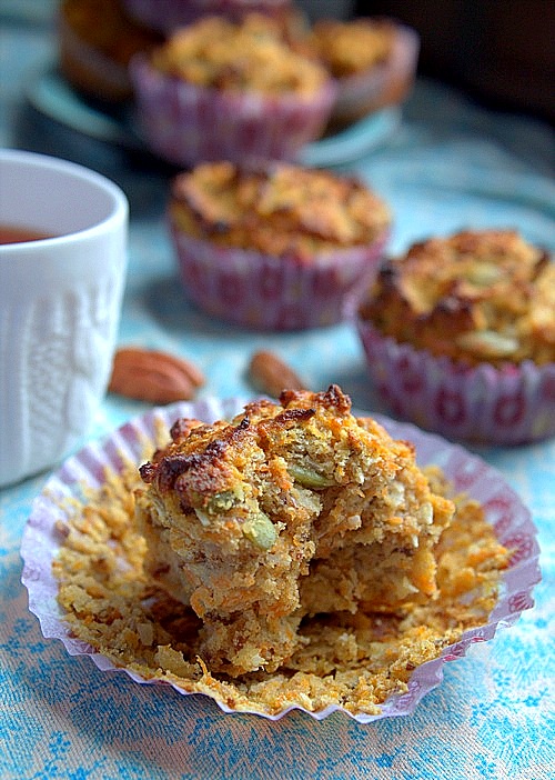Jak ja lubię takie wypieki! Muffinki marchewkowe bez dodatku cukru i tłuszczu, dietetyczne i bezglutenowe. Zjadłam kilka na raz bez wyrzutów sumienia. Muffinki można przygotować na poczekaniu. Dwadzieścia minut w piekarniku i muffinki już są upieczone, a po domu roznosi się słodki zapach migdałów i kokosu.