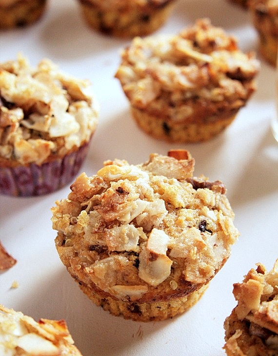 Jak ja lubię takie cuda, kiedy każdy nowy kęs smakuje inaczej. Trochę quinoa, duże kokosowe płatki, czekolada, to i tam jakiś orzech…Te muffiny to pychotka!